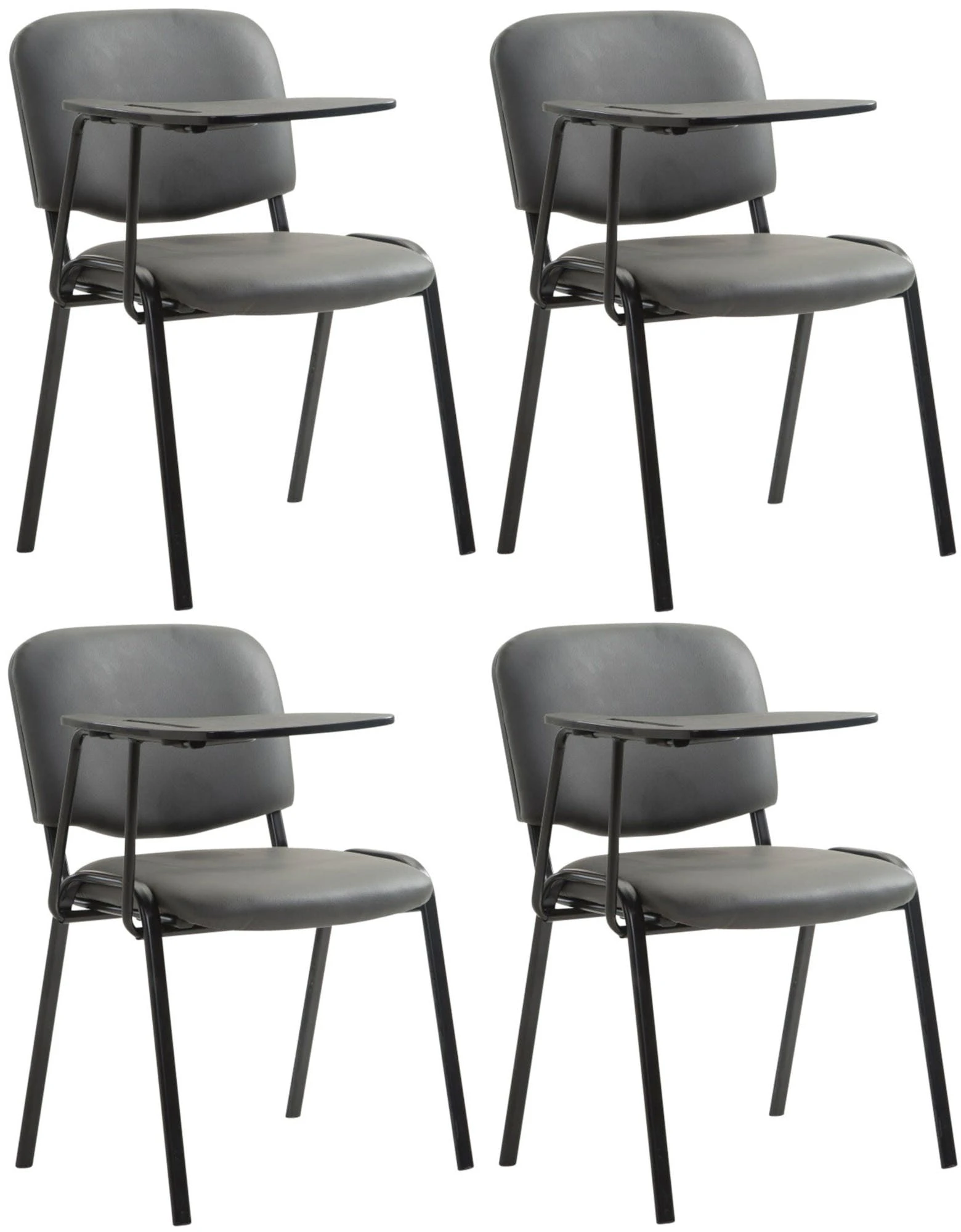 Das Set für vier Personen schafft eine komfortable Umgebung für Meetings, Vorlesungen und Konferenzen. Jeder Stuhl ist bequem gepolstert und zusätzlich auf der rechten Seite mit einer klappbaren Ablagefläche ausgestattet. Diese eignet sich bestens als Arbeitsfläche. Durch den Tisch sind die Stühle nicht stapelbar. Ein modernes 4-Fuß Gestell aus Metall sorgt für Stabilität. Mit dem Set aus vier Konferenzstühlen lassen sich schöne Sitzkompositionen in den Farben Braun, Grau, Rot, Schwarz, Creme, Weiß, Orange oder Grün erstellen.
