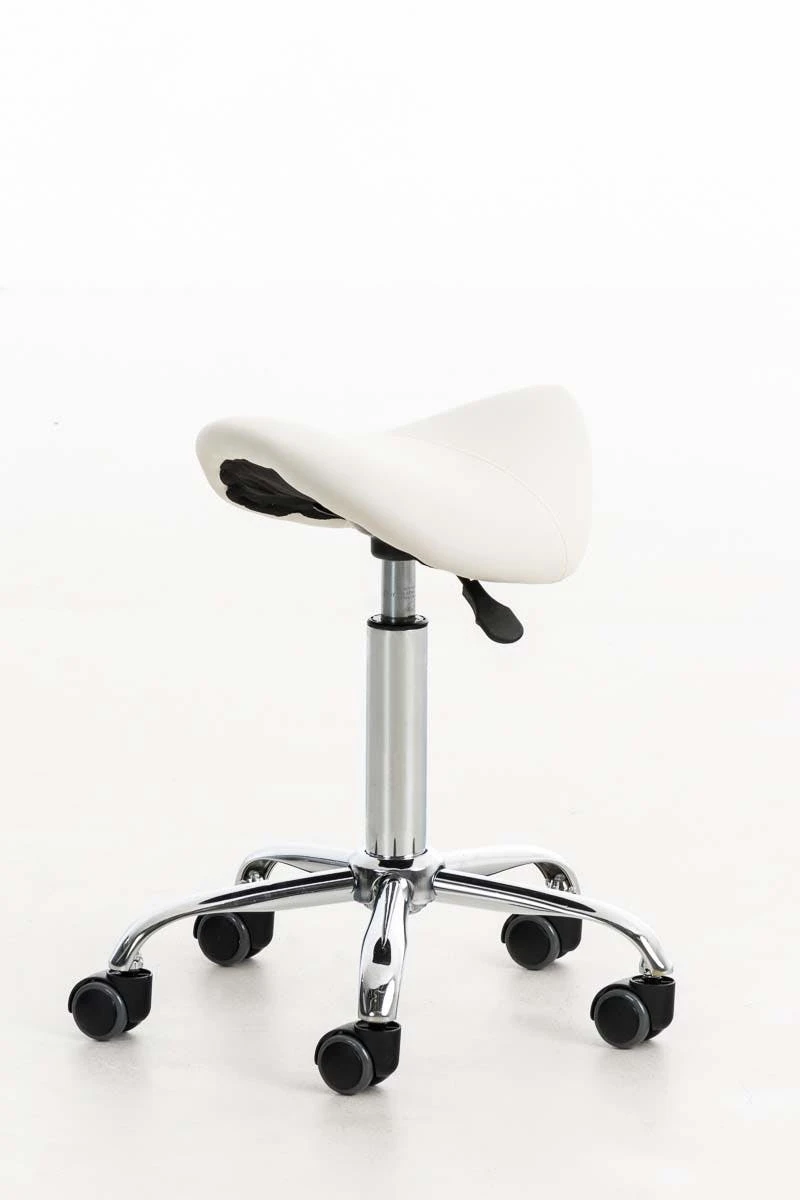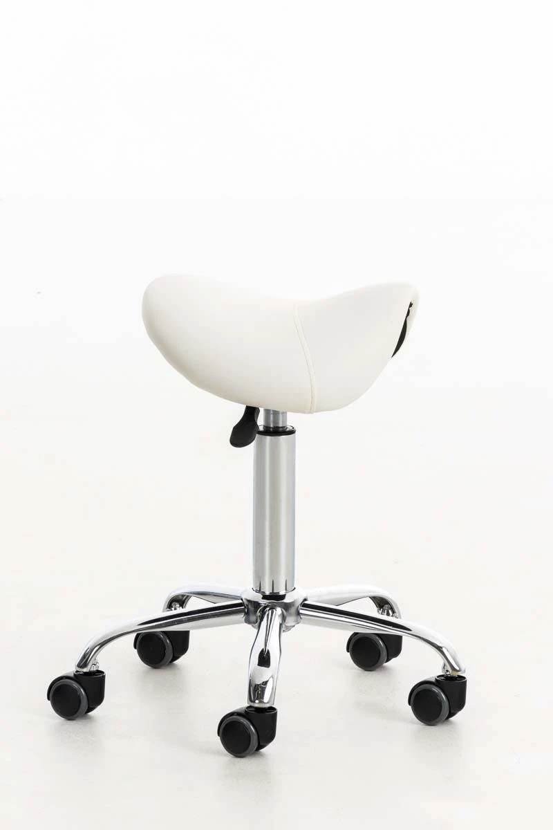 Der Arbeitshocker RENO ist eine komfortable Sitzgelegenheit, die jedem Raum einen modischen Hauch verleiht. Er ist ideal für Arztpraxen, Massage- und Kosmetiksalons geeignet – Bequem und mit individuell einstellbarer Sitzhöhe auf dem drehbaren Sattelsitz Platz genommen, kann man durch den Raum rollen und flexibler arbeiten. Auch daheim ist dieser Rollhocker eine Bereicherung, da er auf den täglichen Gebrauch ausgerichtet ist. Ausgestattet ist dieser Drehhocker mit einem pflegeleichten Kunstlederbezug, welcher mit einer Ziernaht versehen ist. Das stabile Gestell besteht aus Metall in Chrom-Optik und steht auf 5 Leichtlaufrollen mit denen man immer leicht und locker auf Hart- oder Teppichböden rollen kann. Schlichtes, stilvolles Design und robuste Materialien, die sich im Alltag bewähren – ein rundum empfehlenswertes Produkt.