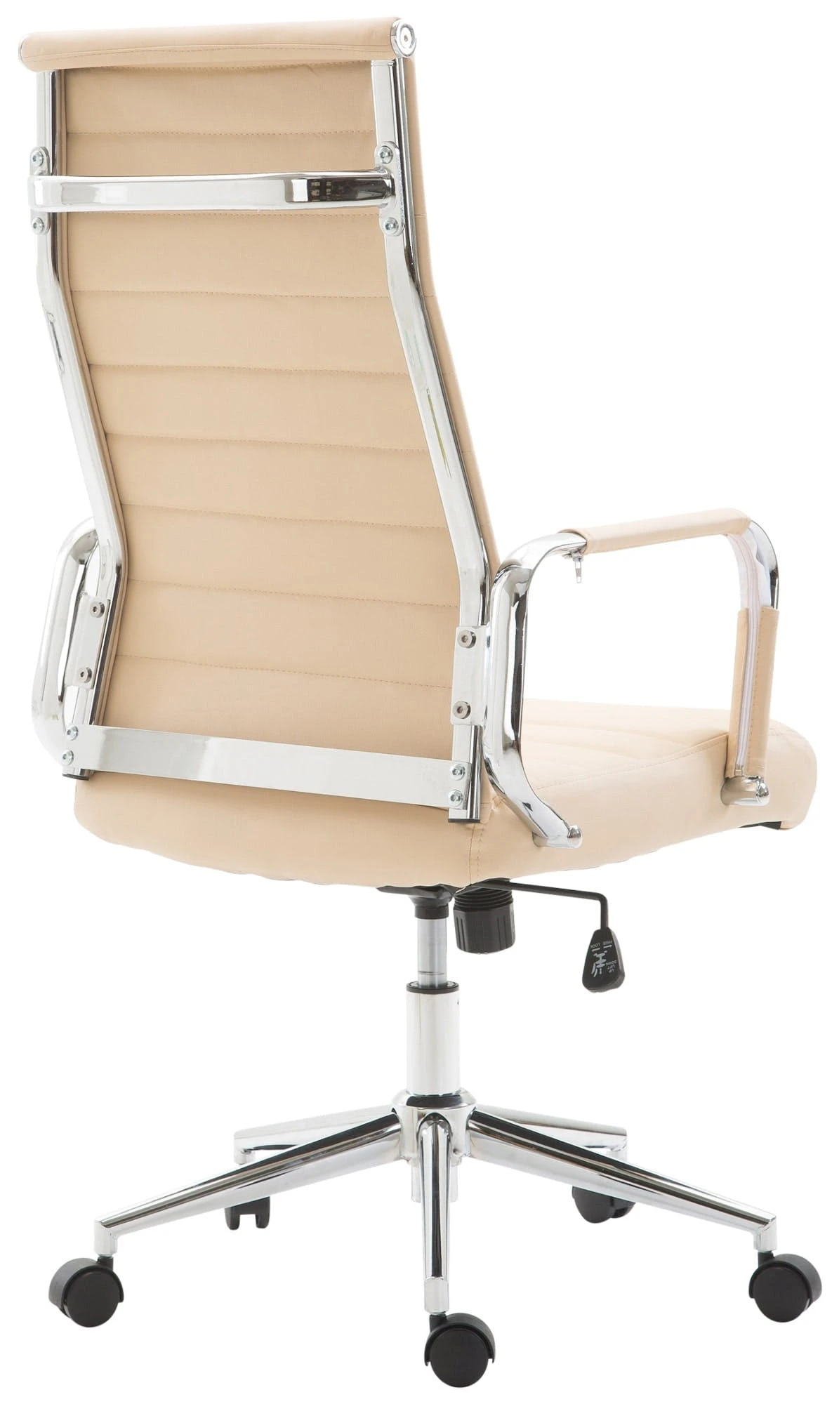 Der exklusive Bürostuhl Kolumbus überzeugt nicht nur mit seinem modernen Look, auch in Sachen Komfort kann ihm keiner etwas vormachen. Seine hochwertige Polsterung und der pflegeleichte Kunstlederbezug sorgen für ein angenehmes Sitzgefühl auch über mehrere Stunden. Zudem ist die Sitzhöhe stufenlos verstellbar und garantiert ein ergonomisches Sitzen. Des Weiteren ist der Schreibtischstuhl mit einem Wippmechanismus versehen, der für mehr Bewegungsfreiheit sorgt. Das elegante Metallgestell in Chrom-Optik und die stabil geschwungenen Armlehnen mit Kunstlederbezug geben dem Ganzen noch das gewisse Extra. Die Stabilität wird durch das Chromoptik Metallgestell gewährleistet, das mit dem schwarzen Bezug auch in Schwarz erhältlich ist. Durch die fünf Leichtlaufrollen kann man leicht und locker über den Boden rollen – egal ob auf Hart- oder Teppichböden.