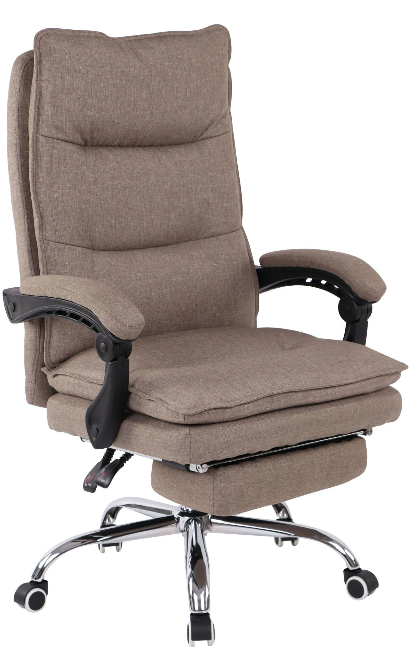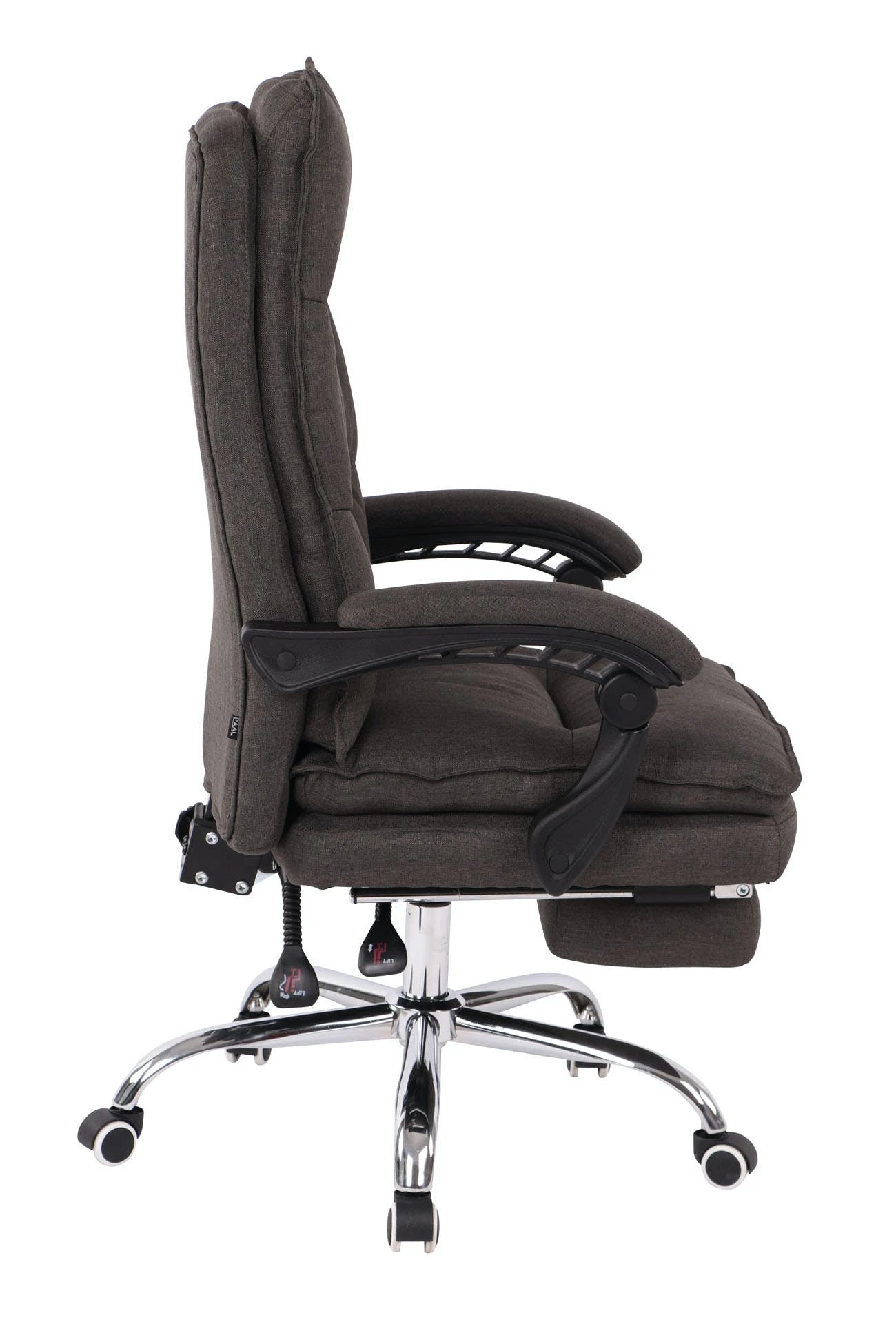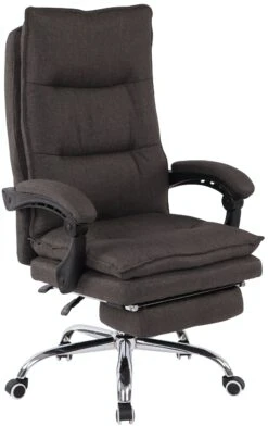 Komfort ist mit dem Bürostuhl Power im klassischen Look angesagt. Eine hochwertige Polsterung und ein pflegeleichter Stoffbezug sorgen für ein komfortables Sitzgefühl, welches auch bei längerem Verweilen bestehen bleibt. Die leicht verstellbare Fußstütze und Rückenlehne sorgen zusätzlich für eine angenehme Pause zwischendurch, bei der sich entspannt zurückgelehnt werden darf und die Beine hochgelegt werden können. Dank der stufenlos verstellbaren Sitzhöhe garantiert der Chefsessel zudem jederzeit ein ergonomisches Sitzen. Dabei steht er standsicher auf fünf Leichtlaufrollen und einem Gestell aus Metall in Chromoptik. Egal ob Hart- oder Teppichböden – man kann immer leicht und locker über den Boden rollen.