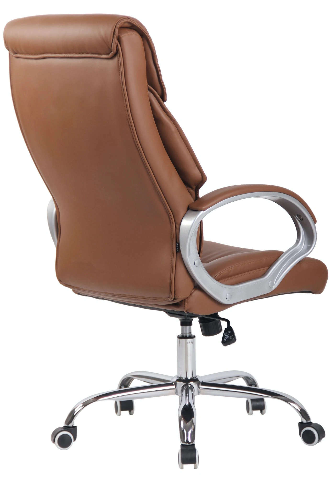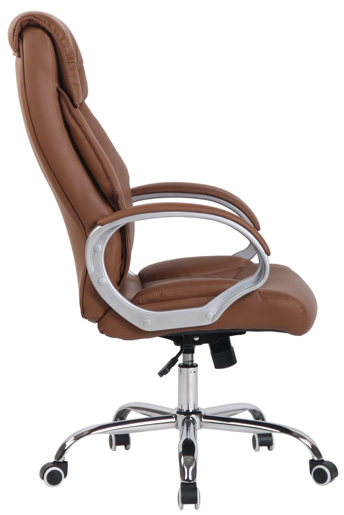 Der Chefsessel Torro ist ein extrem hochwertiger Bürostuhl mit einer sehr hochwertigen Polsterung und Kunstlederbezug. Kunstlederbezüge haben den Vorteil, dass sie elastisch sind und sich bei Entlastung wieder glatt ziehen. Dies sieht nicht nur schöner aus, sondern erhöht zusätzlich die Lebensdauer des Sitzbezuges. Kunstlederbezüge sind außerdem atmungsfähig, was grade bei hohen Temperaturen ein Vorteil ist. Das Gestell ist aus Metall in Chromoptik und sehr stabil. Die Sitzhöhe ist stufenlos verstellbar. Der Stuhl verfügt über einen eingebauten Wippmechanismus für mehr Bewegungsfreiheit. Der Bürostuhl verfügt über 5 sehr robuste Leichtlaufrollen. Egal ob Hart- oder Teppichböden – Sie werden immer leicht und locker über den Boden rollen können.