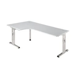Freiformtisch New York – 720 X 2000 X 1200/800 Mm – C-Fuß Design – Weißaluminium/weiß 110561
