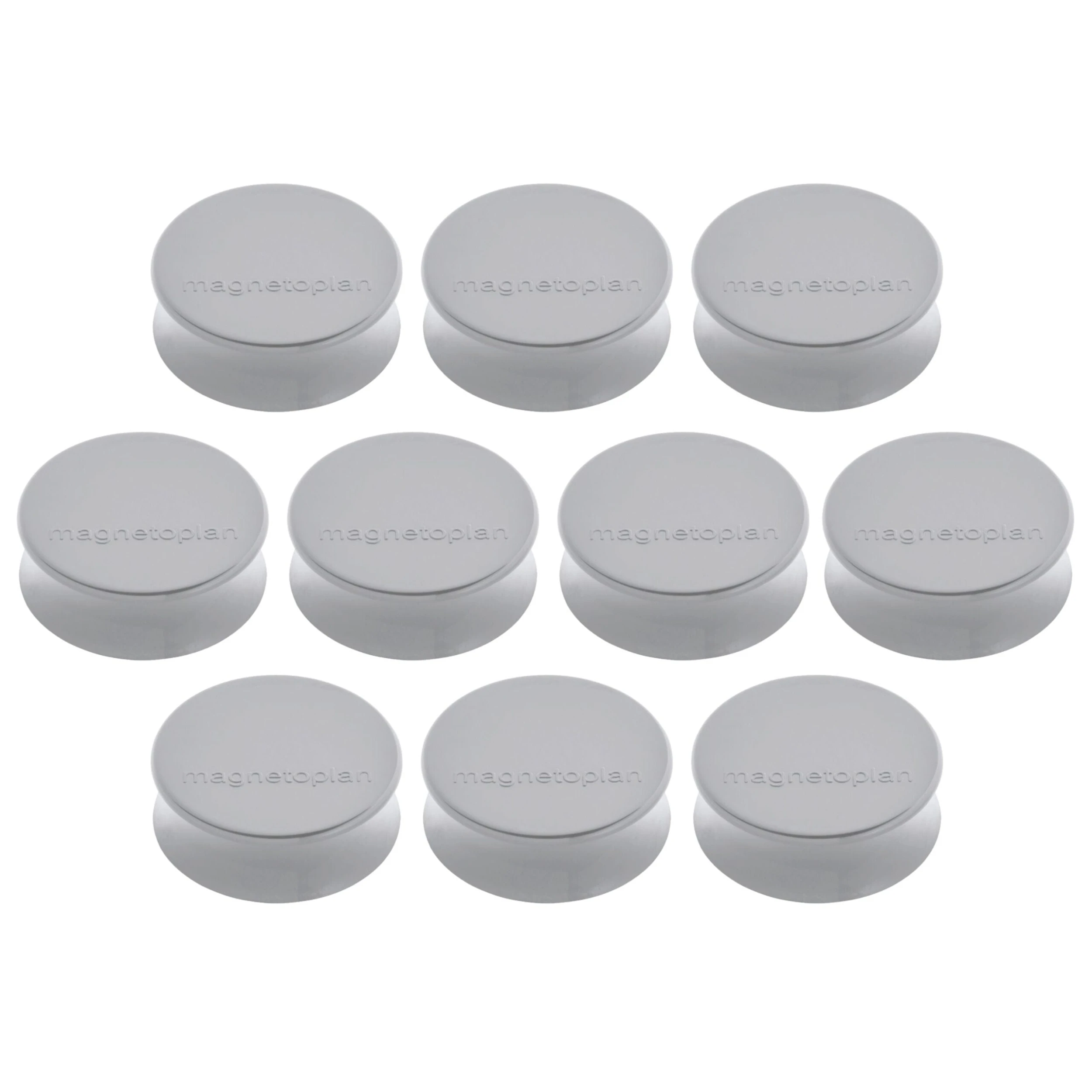 magnetoplan Ergo-Magnete large in silber, Durchmesser: 34 mm, Haftkraft: 2,0 kg. Durch den ergonomischem Griffrand bieten sie perfekten Komfort in der Handhabung und lassen sich leicht von der Tafeloberfläche wieder abnehmen. Die spezialbeschichtete Magnet-Unterseite verhindert ein Zerkratzen der Oberfläche Durch die Vollkern Ferrit-Ausstattung verfügen die Ergo-Magnete über für eine besonders hohe Haftkraft Ein hochwertiger Kleber garantiert den festen Verbund mit den farbigen Kunststoffkappen Die qualitativ erstklassige Verarbeitung macht die Ergo-Magnete praktisch unbegrenzt einsatzfähig.