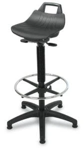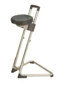 ESD-Stehhilfe, mit Sitzneigungsverstellung und zusätzlich drehbar, Sitz aus PU-Schaum mit Stahleinlage in schwarz, Sitz Höhe 600 – 850 mm, Gestell aus Edelstahl, Gestell mit Gleiter.