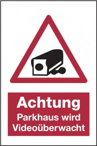 Hinweisschild, Achtung Parkhaus wird videoüberwacht, Aluminium, 300 x 200 mm – 200x300x0.45 mm Aluminium geprägt