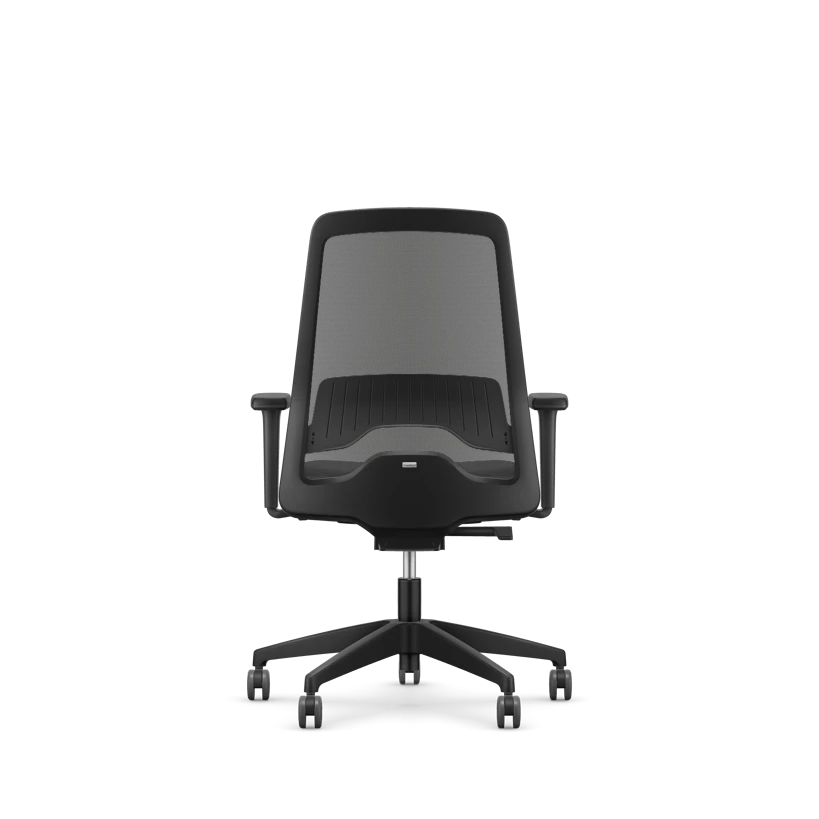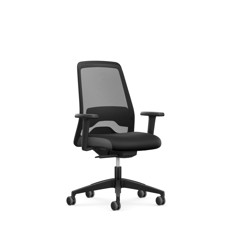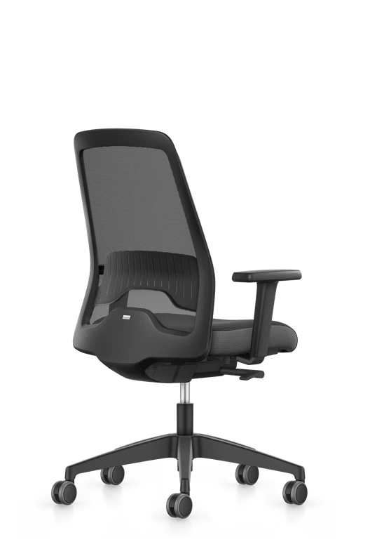 Gestalterisch bestich der Bürostuhl NEW EVERYis1 mit Netzrücken von Interstuhl durch seine konsequente schwarze Farbgebung, die ein beständiges Erscheinungsbild auch bei intensiver Nutzung garantiert. Dabei schwebt die mittelhohe netzbespannte Rückenlehne beinahe frei im Raum und eignet sich durch ihren fast schwerelosen Auftritt auch besonders für den Einsatz im Homeoffice. Das atmungsaktive unverklebte Sitzpolster steht für besten Sitzkomfort.