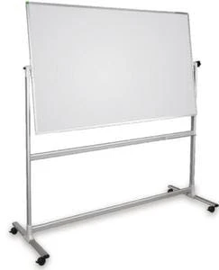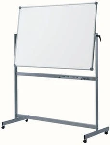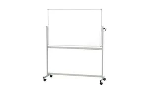 Mobile Drehtafel, Höhe x Breite 1950 x 2350 mm, Tafel Höhe x Breite 1200 x 2200 mm, Tafeloberfläche magnethaftend, beschriftbar und trocken abwischbar, Tafel aus Stahl in weiß, Tafelfläche um 360° drehbar und stufenlos arretierbar, Ablageschale, Rahmen aus Aluminium in silber, Gestell aus Stahl in grau.