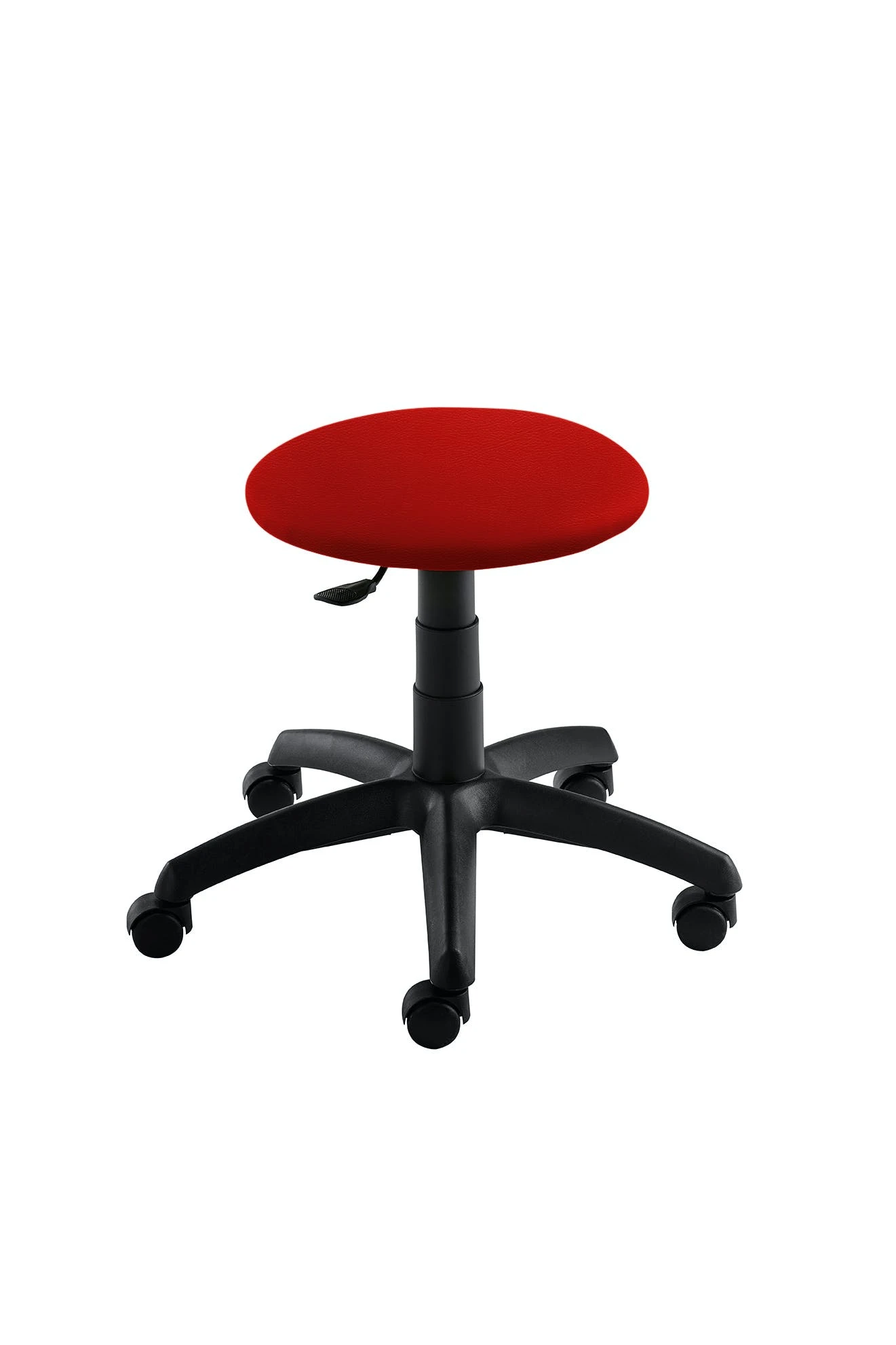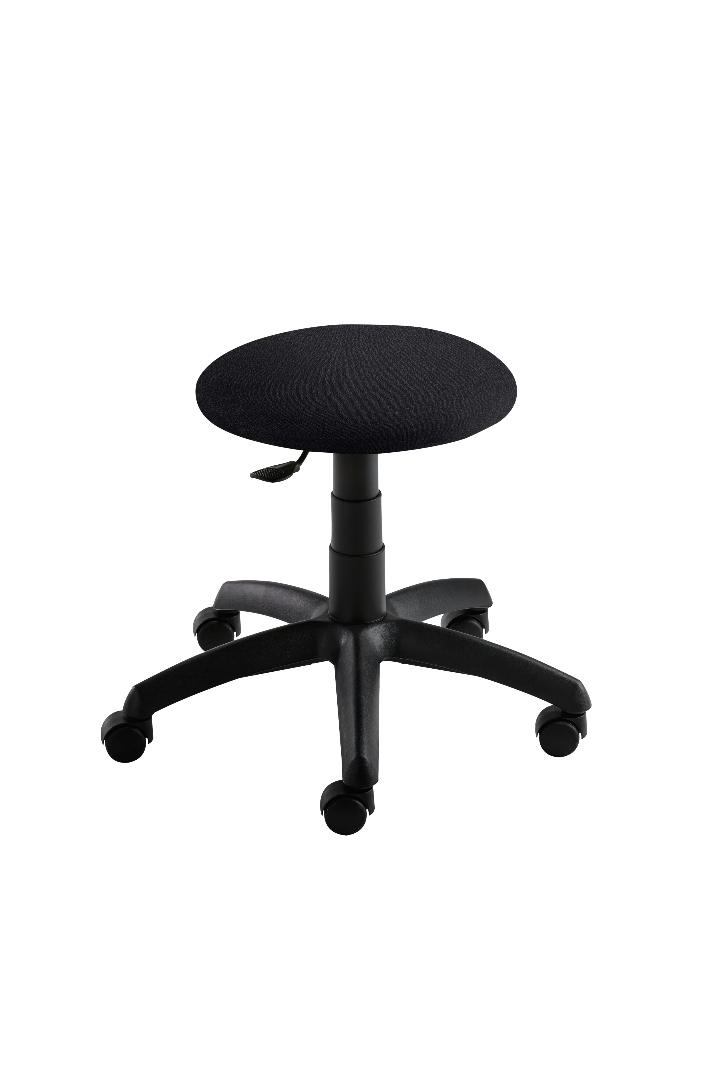 Gestell schwarz, Sitz gepolstert, stufenlose Höhenverstellung durch Gasfeder, Kunststoff-Fußkreuz schwarz, inkl. Rollen für Teppichböden, Sitzhöhe 39 – 50 cm.