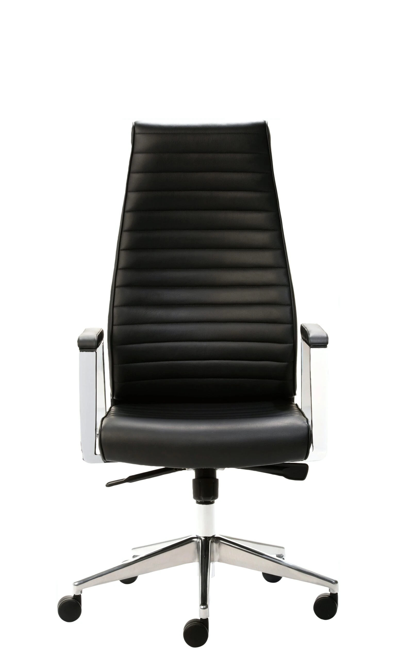 Der elegante Drehsessel myREFLECTION aus schwarzem PU-Kunstleder überzeugt nicht nur durch sein elegantes Auftreten sondern auch durch seinen hohen ergonomischen Standard. Der angenehm hohe Rücken sowie die integrierte RELAX-Mechanik mit individueller Gewichtseinstellung und arretierbarer Wippfunktion bieten dem Nutzer komfortables Sitzen und eine stets gute Anpassung an die Wirbelsäule. Moderne, schwarz gepolsterte Armlehnen mit chromglänzenden Applikationen geben dem Stuhl eine elegante Note. Sitz dank TÜV Rheinland LGA geprüftem Sicherheitsgaslift stufenlos höhenverstellbar und um 360° drehbar. Poliertes Alu-Fußkreuz inklusive Rollen für Teppichböden.