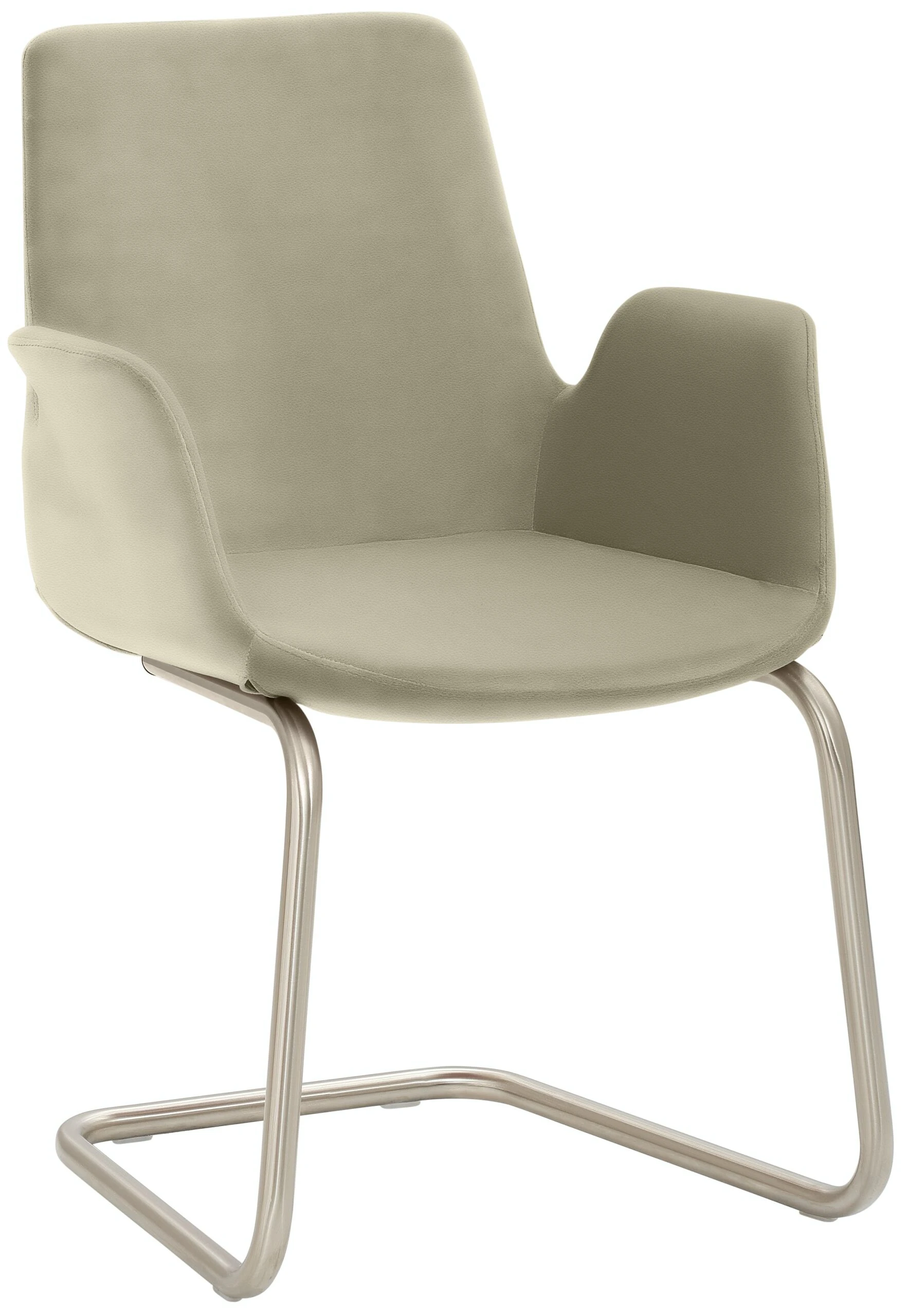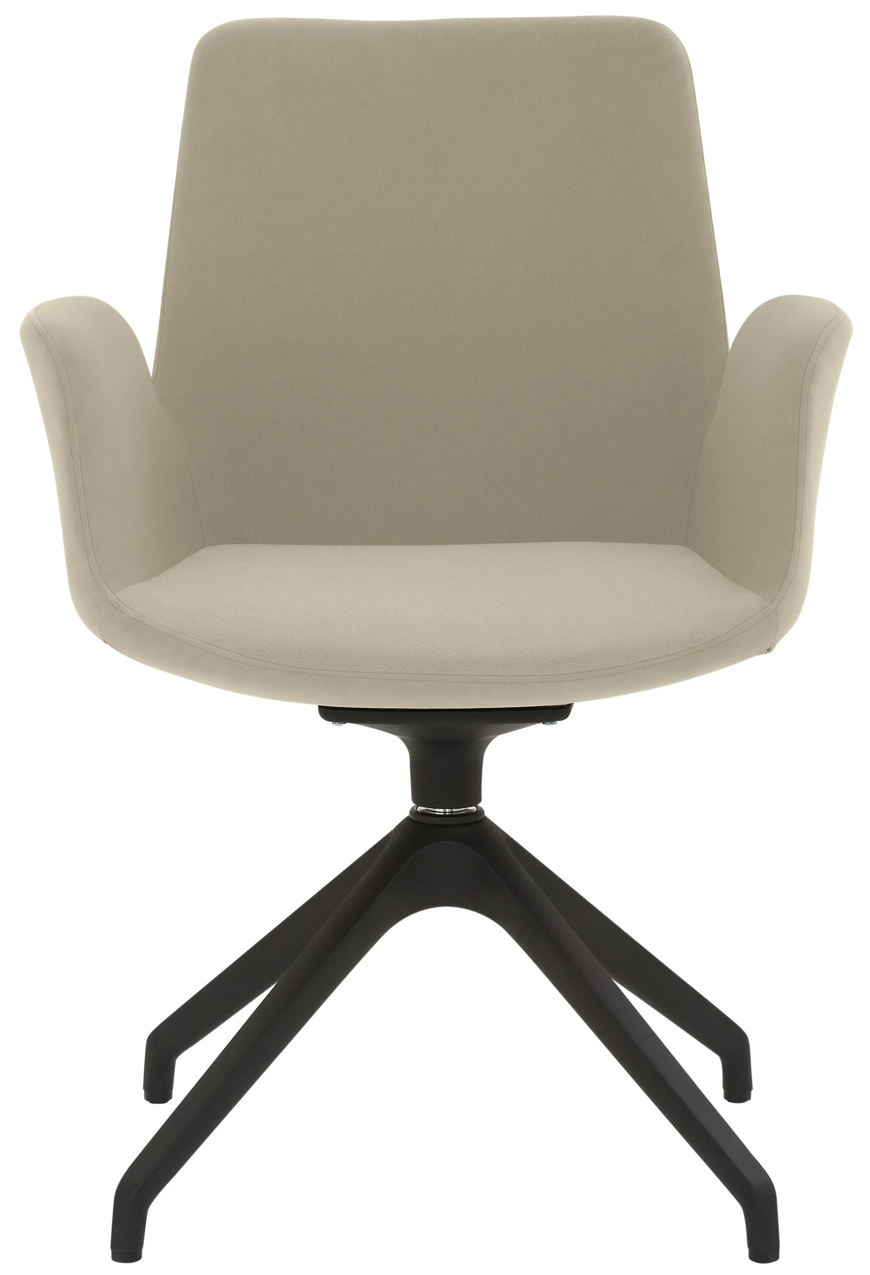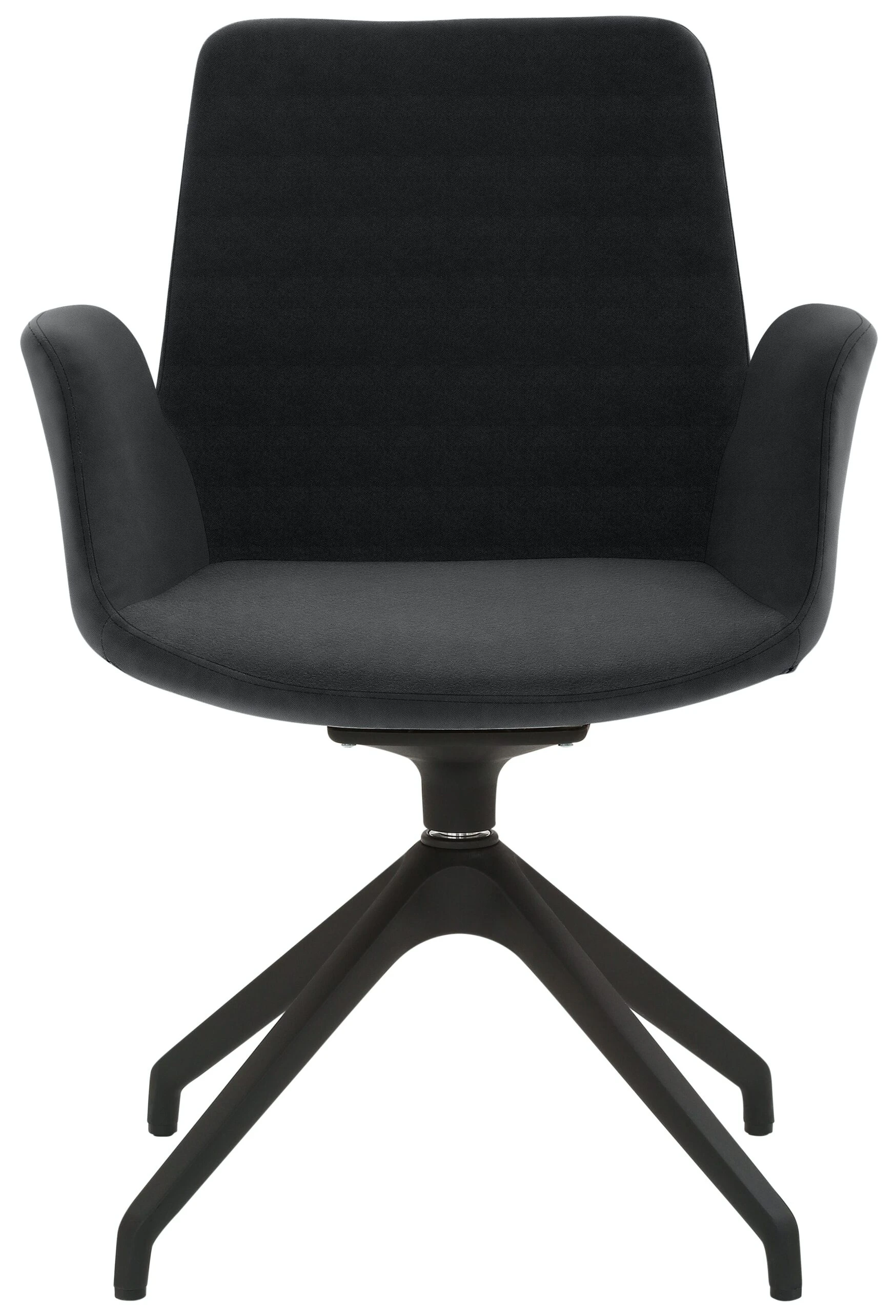 Sternfuß-Gestell, Alu poliert, 360° drehbar, mit integrierten Armlehnen, rundum gepolstert, Sitzhöhe 49 cm.