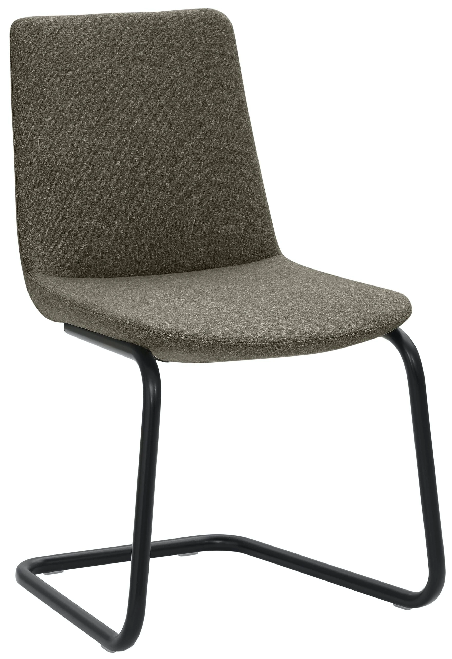 Freischwinger-Gestell, pulverbeschichtet schwarz, rundum gepolstert, Sitzhöhe 47 cm.