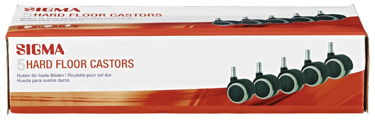 Die SIGMA Hartbodenrollen sind aus Nylon Druckrolle mit PU Rand gefertigt. Sie sind geeignet für den Bürostuhl mit maximalem Fußkreuz mit 350 mm Radius.