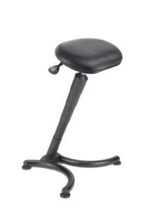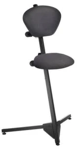 Stehhilfe, mit Sitzneigungsverstellung und zusätzlich drehbar, Sitzbezug aus Stoff in schwarz, mit Tragegriff, Sitz Höhe 610 – 860 mm, Sitz gepolstert, Gestell aus Stahl in schwarz, schräge Mittelsäule.