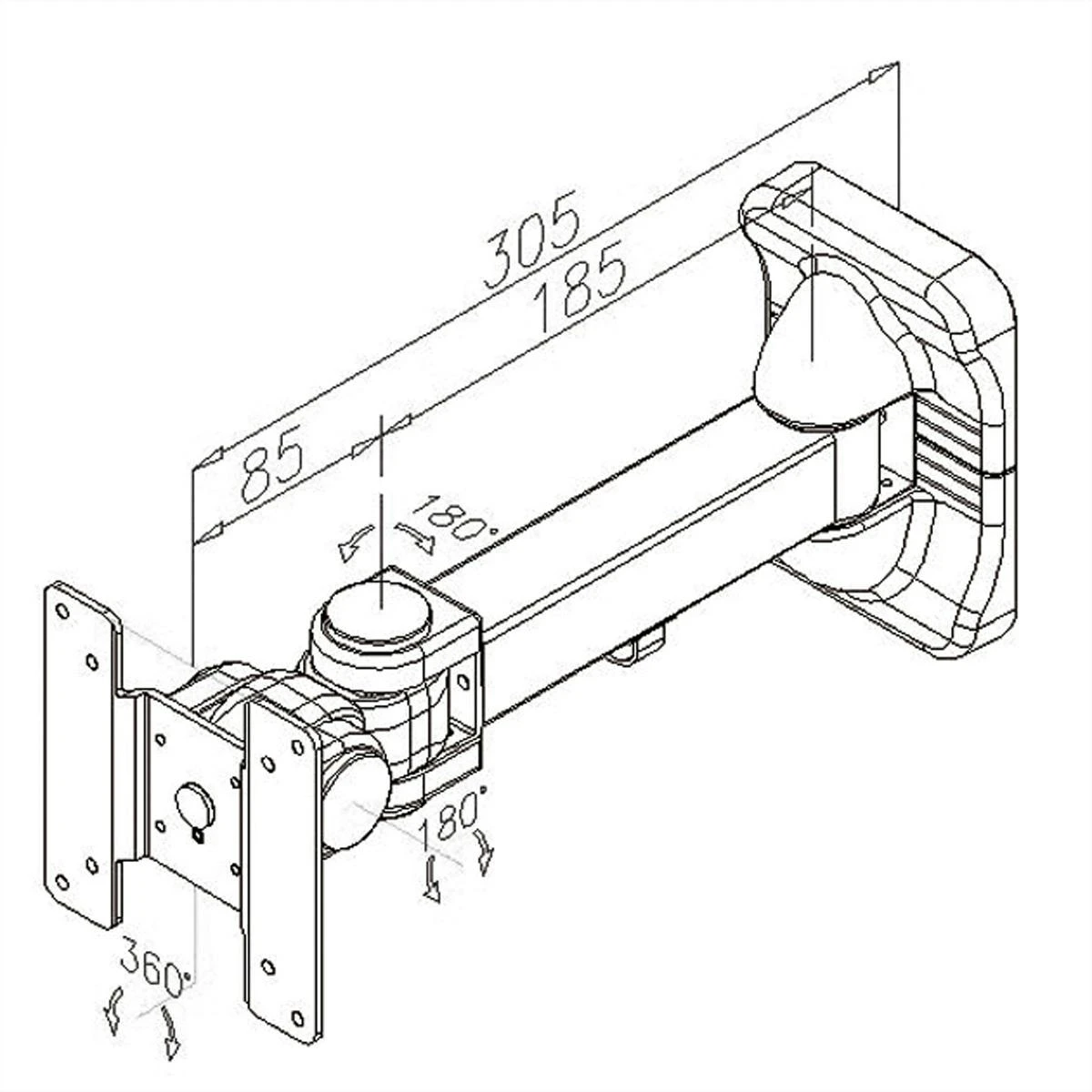 Zur Befestigung von Bildschirmen mit VESA 75 (75x75mm) bzw. VESA 100 (100x100mm). Neigung einstellbar über Gelenk. Tragkraft: 10kg